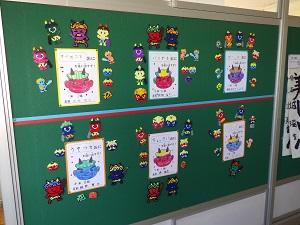 節分に合わせて、自分の心の中の「追い出したい鬼」を考えたものが、なかよしの廊下や1年生の教室に掲示されていました。