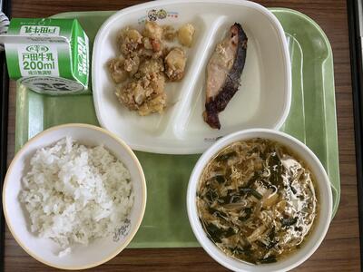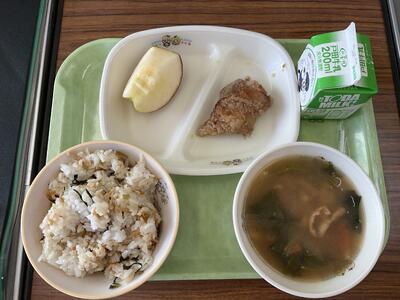 ・こまつなじゃこごはん 🍚 じゃこ隊長とこまつなが力を合わせて、カルシウムパワー満点ごはん!