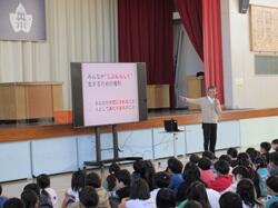 校長先生からは、「人権とは、『みんなが”自分らしく”生きるための権利』であること」、そして、お互いの人権を守るためには、「やさしい言葉をつかうこと」「相手のことを考えること」の2つが大切になるとお話いただきました。お話の中で、子どもたちは校長先生の投げかける質問に対して、様々な考えを発表し、「人権」について考え合い、学び合う姿が見られました。