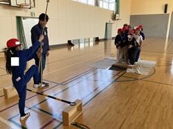屋内や屋外で、ターザンロープやシーソーなどを使ったさまざまなアクティビティに取り組む中で、子どもたちは声をかけ合い、励まし合いながら課題に挑戦していました。思うようにいかない場面でも、互いに支え合い、考え合いながら乗り越えようとする姿から、仲間意識や協力することの大切さが育まれていることを感じました。