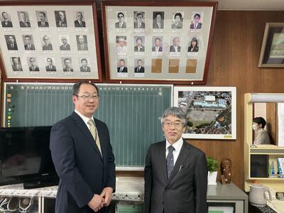 歴代の校長先生方のお写真が並ぶ校長室に、佐國校長先生のお写真が新たに掲げられました。
