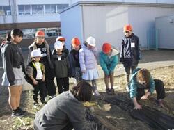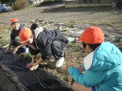 12月19日(金)、1年生が生活科の学習の一環として、チューリップの球根植えを行いました。