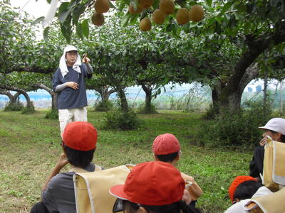 (写真は10月の5年生梨の収穫の様子)